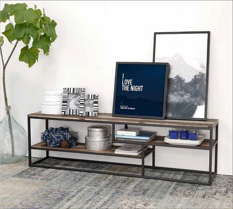 שידות טלוויזיה מעוצבות מעץ מלא בשילוב ברזל, זכוכית או ראטן. מזנונים לסלון בעיצוב קלאסי, כפרי, אקלקטי, מודרני, בוהו, וינטאג’ ועוד.