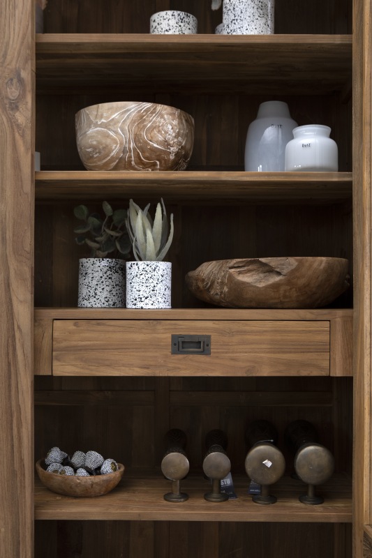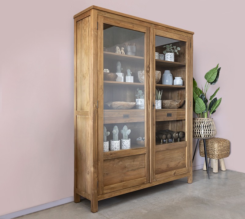 ויטרינה מעץ טיק ממוחזר מלא, עם זכוכיות בשתי גדלים!