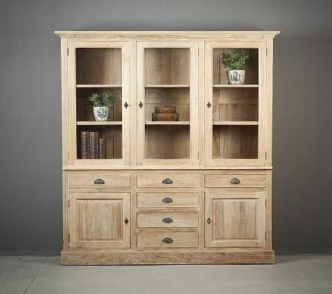 ויטרינה בסגנון כפרי, עם הרבה מקום לאחםון. בתמונה זו מעץ טיק מולבן. חמש דלתות ושש מגירות .