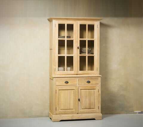 ארון ויטרינה מעץ טיק בגוון טבעי בסגנון טוסקני. מגוון ויטרינות בגלריית רהיטי עץ ווסטו.