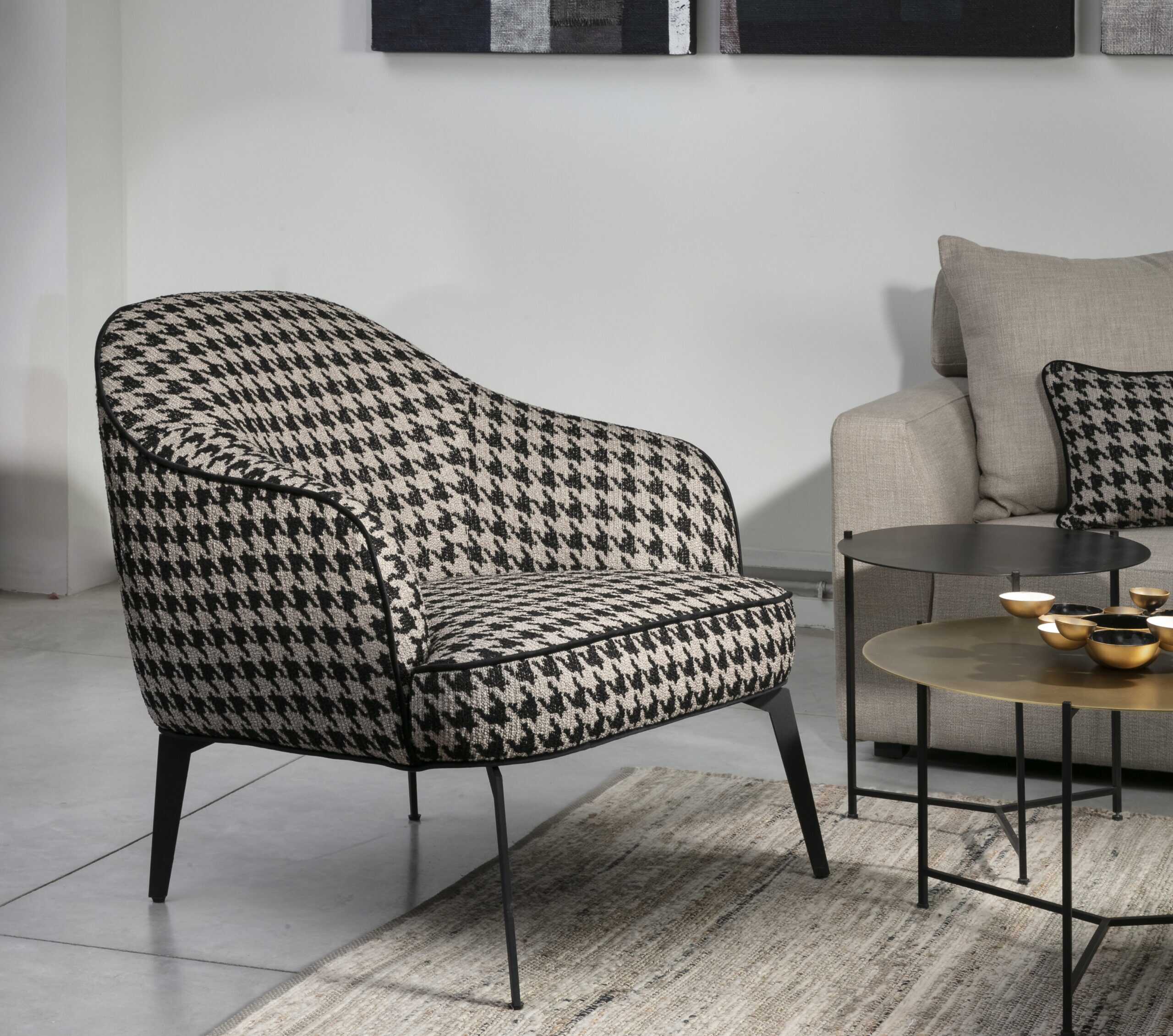 כורסת יחיד מרופדת ומעוצבת בקווים רכים. בעלת משענת גב נוחה ורגלי עץ.