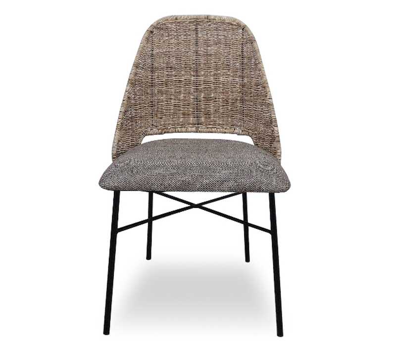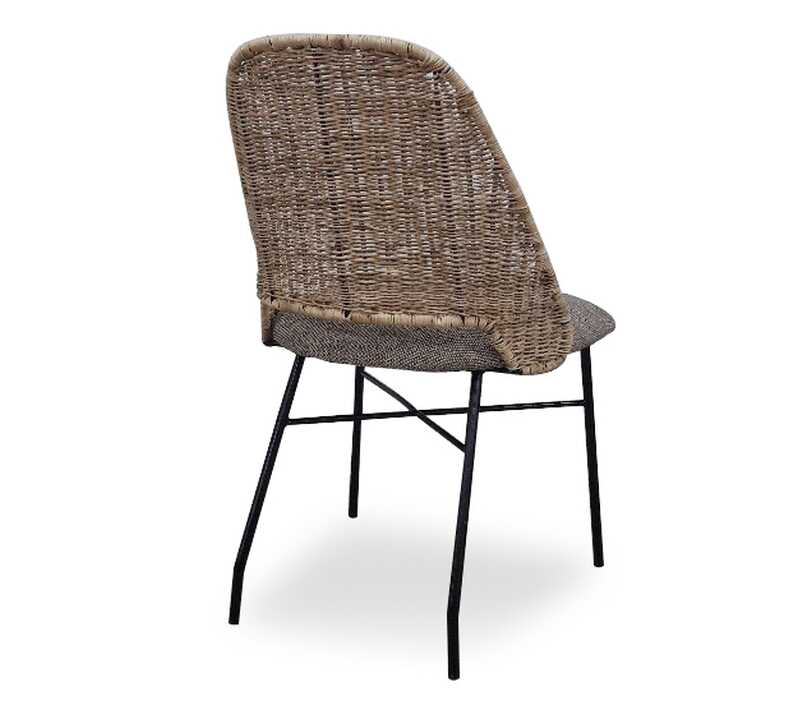 כסא אוכל ראטן לפינת אוכל משולב ברזל. כיסא עם ריפוד פשתן טבעי.