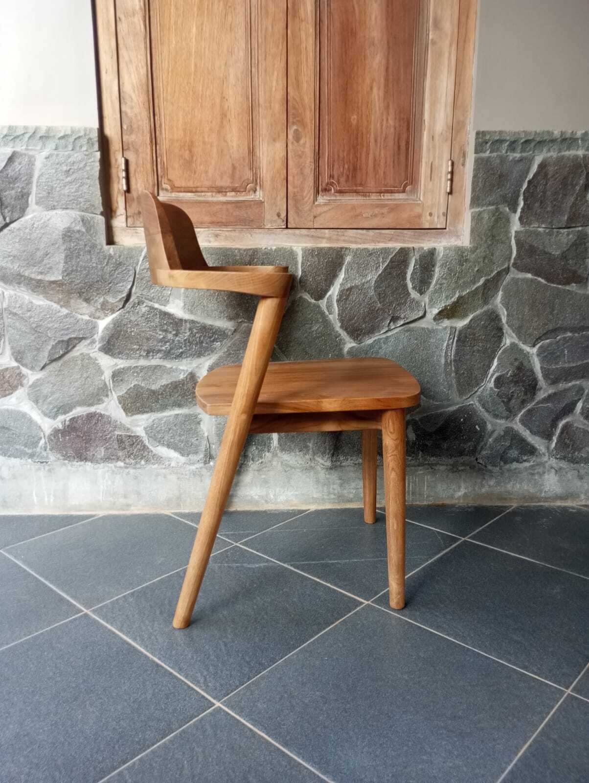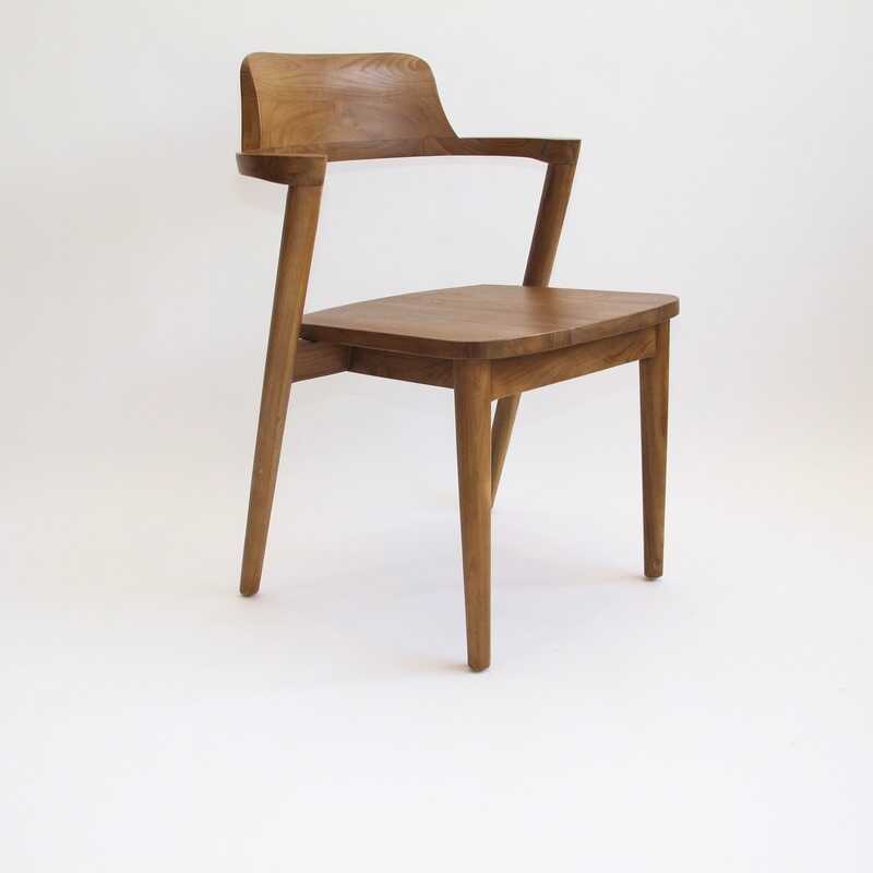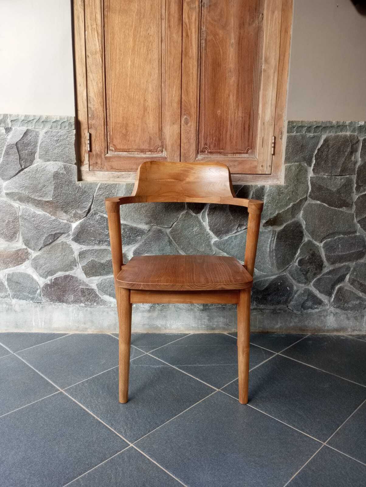 כיסא אוכל עשוי מעץ טיק עם גב מעוגל וידיות קצרות