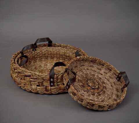 מגשים ארוגים מקליפות עלי בננה במגוון גדלים עם ידיות ויניל