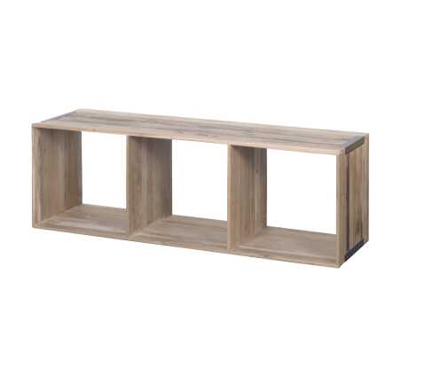 מדף דקורטיבי מעץ מלא בגימור טבעי עם 3 קוביות