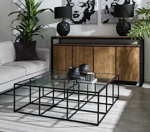 שילוב עץ טיק ממוחזר עם ברזלממוחזר.