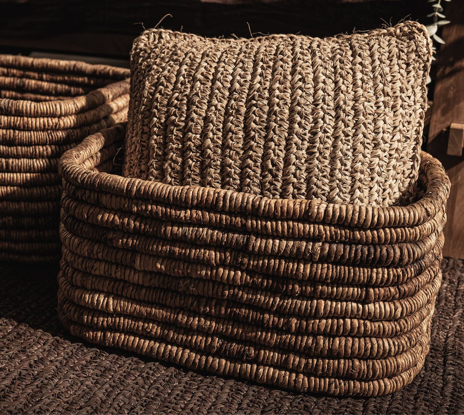 סל מלבני קלוע בעבודת יד מסיבי אבקאה, מתאים לאחסון והשלמת העיצוב בכל חלל בבית. הסל מגיע בשלוש מידות שונות.