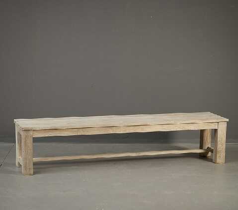 ספסל עץ פשוט ומקסים בקווים ישרים, מתאים ליד שולחן אוכל, בפנים או בחוץ.