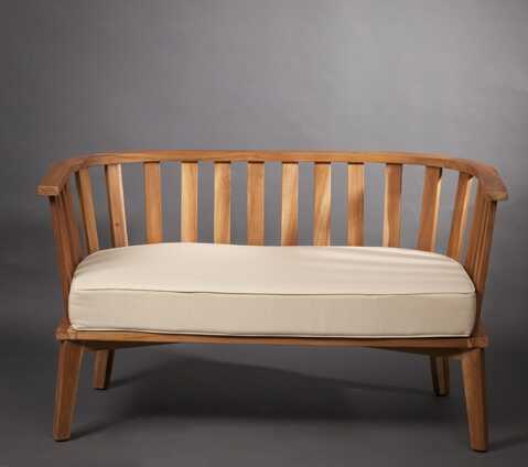 ספסל מרשים עשוי עץ טיק מעוצב בסגנון כפרי מודרני.