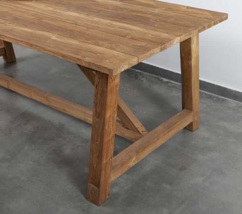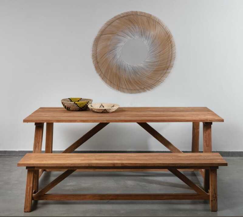 שולחן אוכל עשוי מעץ טיק מלא לגינה.