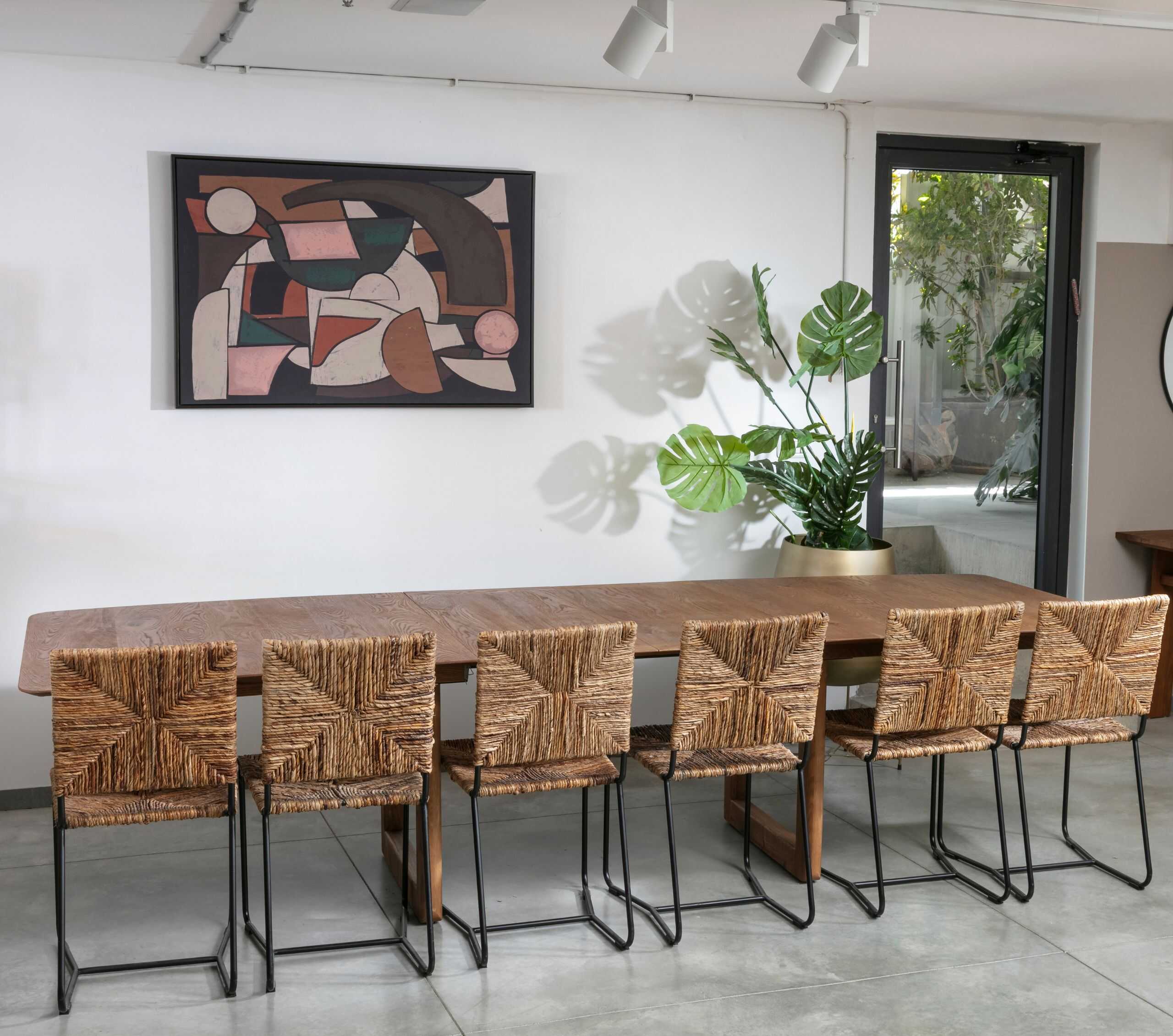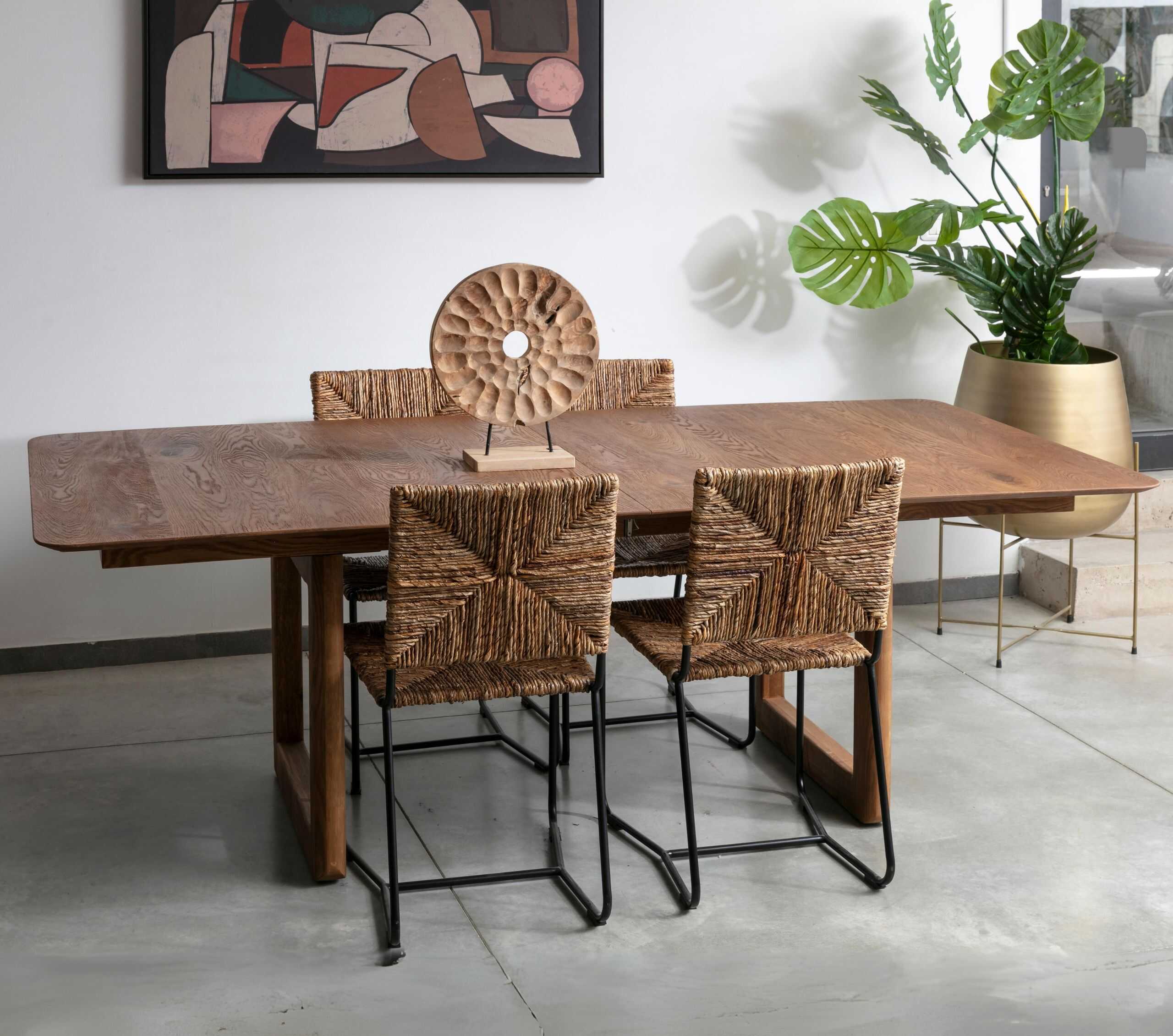 שולחן אוכל מלבני נפתח מעץ אלון מלא. שולחן לפינת אוכל עם שתי הגדלות פנימיות, כול אחת חמישים ס"מ.