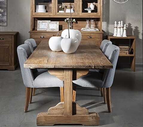 שולחן אוכל מעץ טיק ממוחזר מלא עם פלטה 4 ס"מ