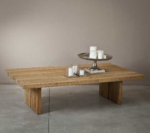 שולחן סלון מעוצב בקווים ישרים עשוי עץ טיק ממוחזר, פלטה בעובי 5 או 3 ס"מ