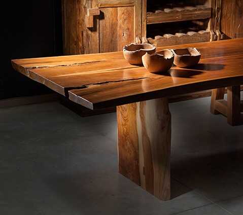 שולחן פרוסת עץ טיק בסגנון גולמי