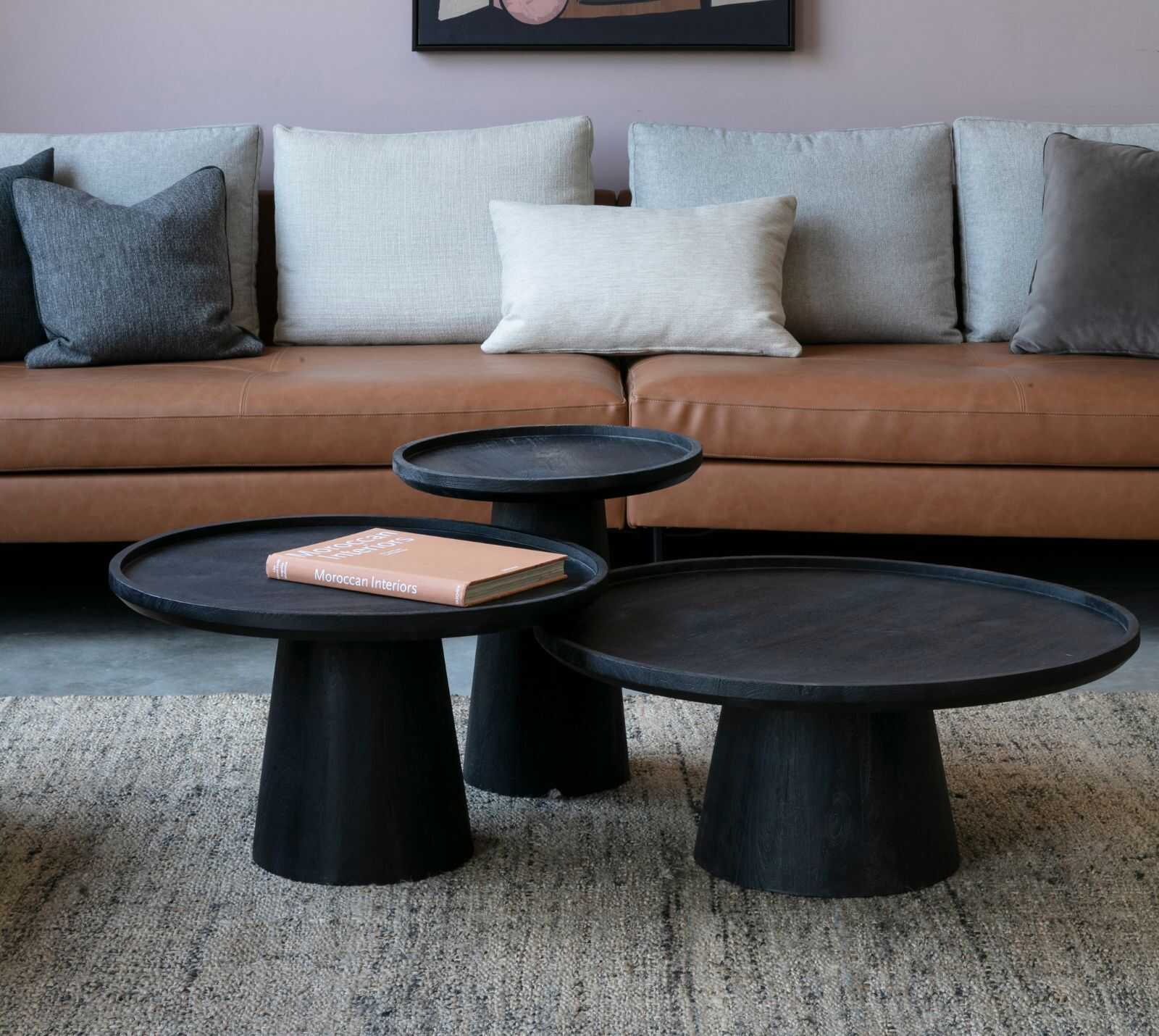 שולחן קפה מעץ מעוצב בצבע שחור, מגיע בשלושה גדלים.
