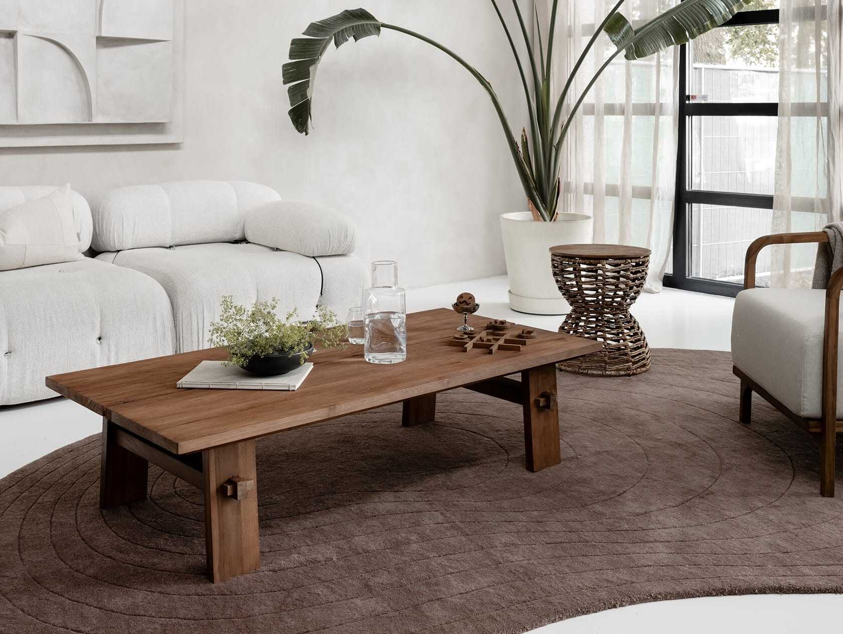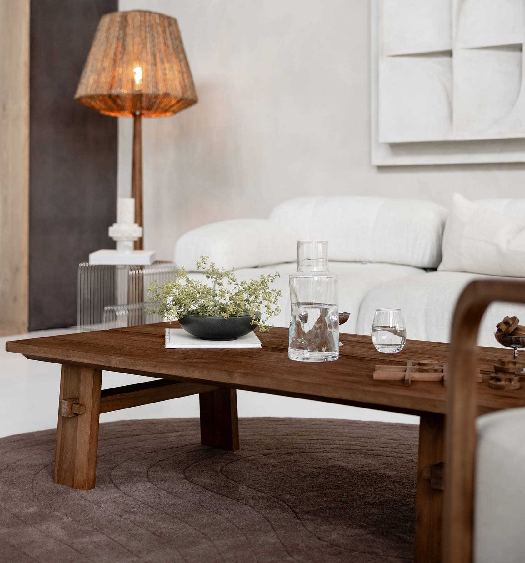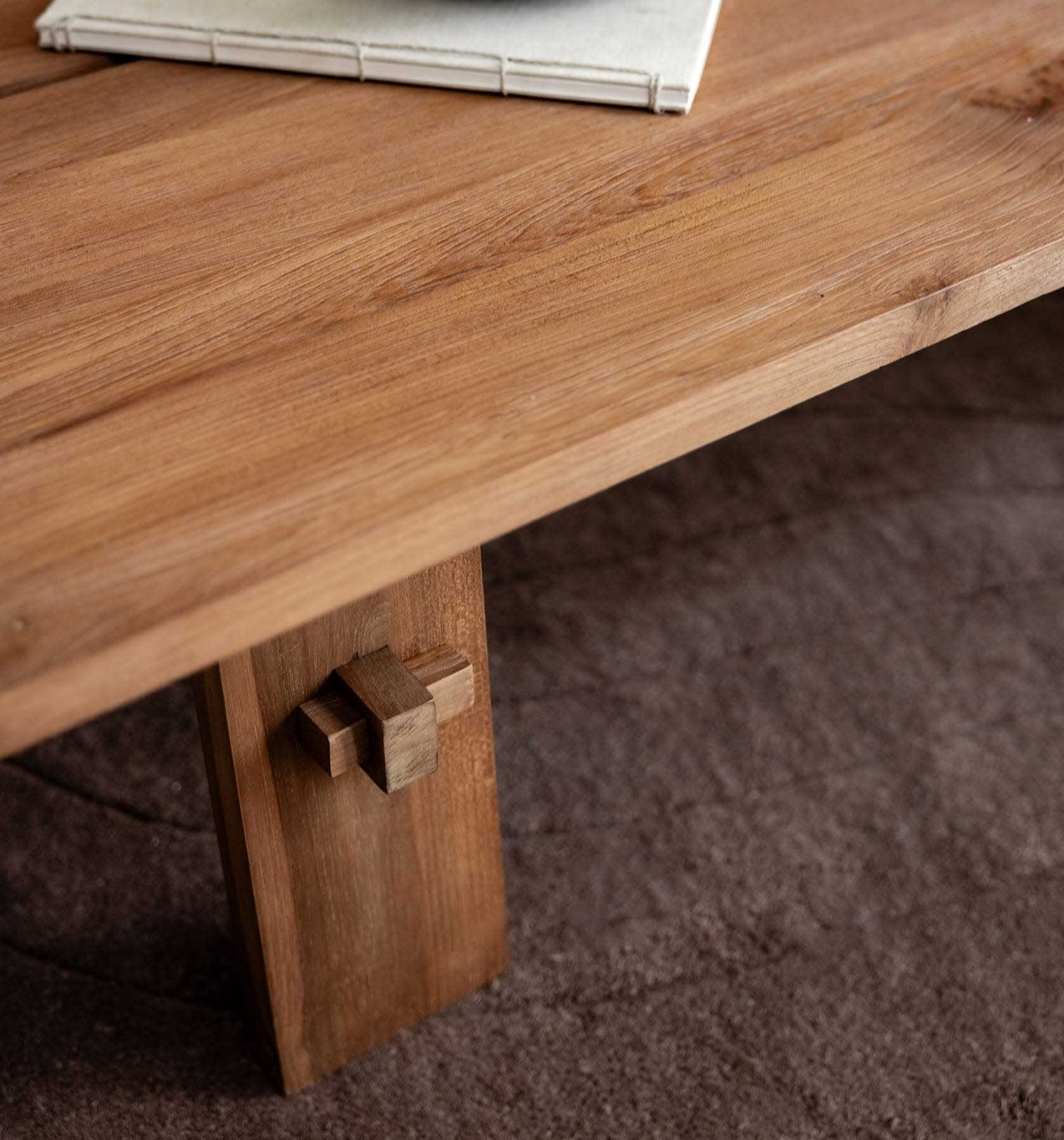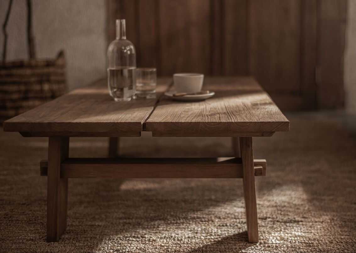 שולחן סלון במראה כפרי עשוי עץ טיק ממוחזר.