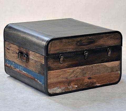 תיבה עשויה עץ טיק שפורק מסירות דייגים בשילוב מתכת – התיבה נפתחת ומתאימה הן כשולחן והן לאחסון.