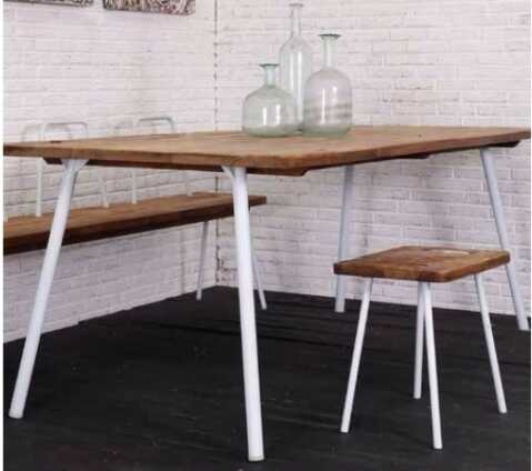 שולחן אוכל עשוי עץ מלא עם רגלי ברזל