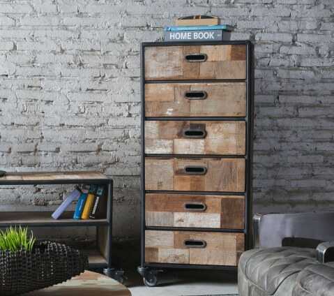 שידה על גלגלים עם מסגרת ברזל שחורה
