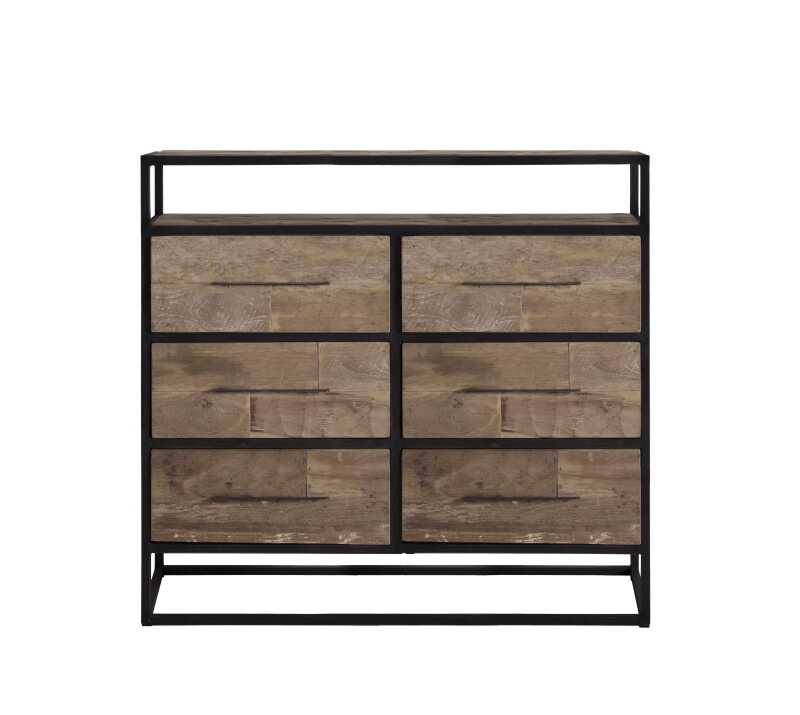 שידת 6 מגירות מעץ מלא בעלת מסגרת ברזל.