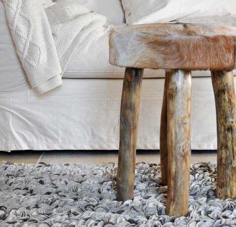 שרפרף מעוצב המשלב עץ טיק מלא עם פרווה מעניינת