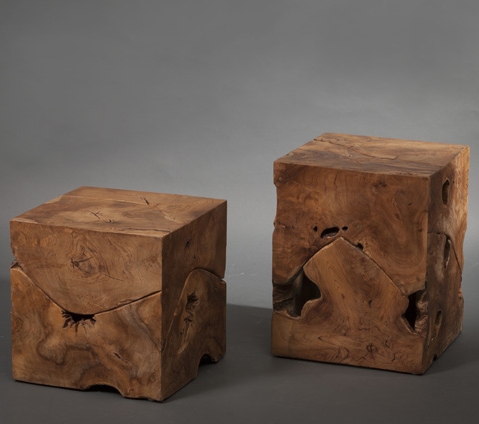 שרפרף או שולחן צד עשוי מעץ טיק מלא