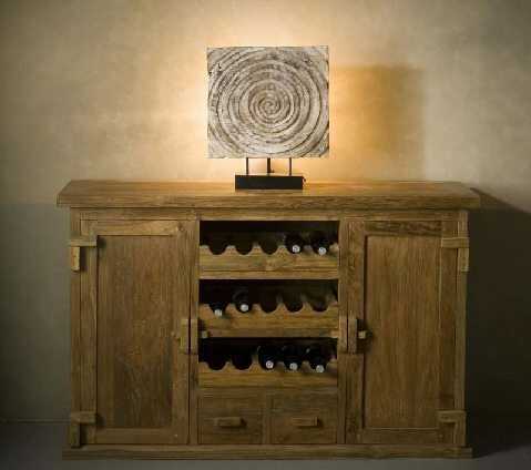 בר יין עשוי עץ טיק ישן בטקסטורה מדהימה ובעיצוב מקסים. שמשדרג את החדר