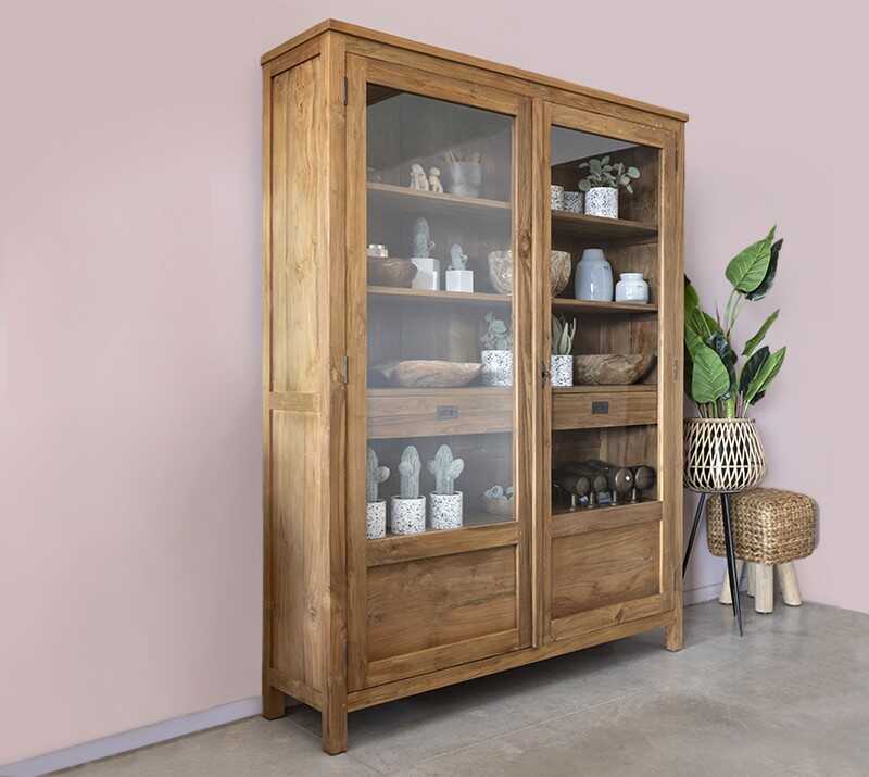 ויטרינה מעץ טיק ממוחזר מלא, עם זכוכיות בשתי גדלים!