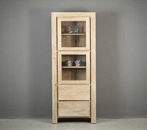 ויטרינה מעץ טיק מלא בגוון מולבן עם קווים ישרים .