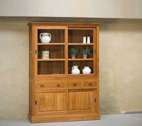 ויטרינה מרשימה מעץ טיק מלא בסגנון טוסקני,עם דלתות הזזה.