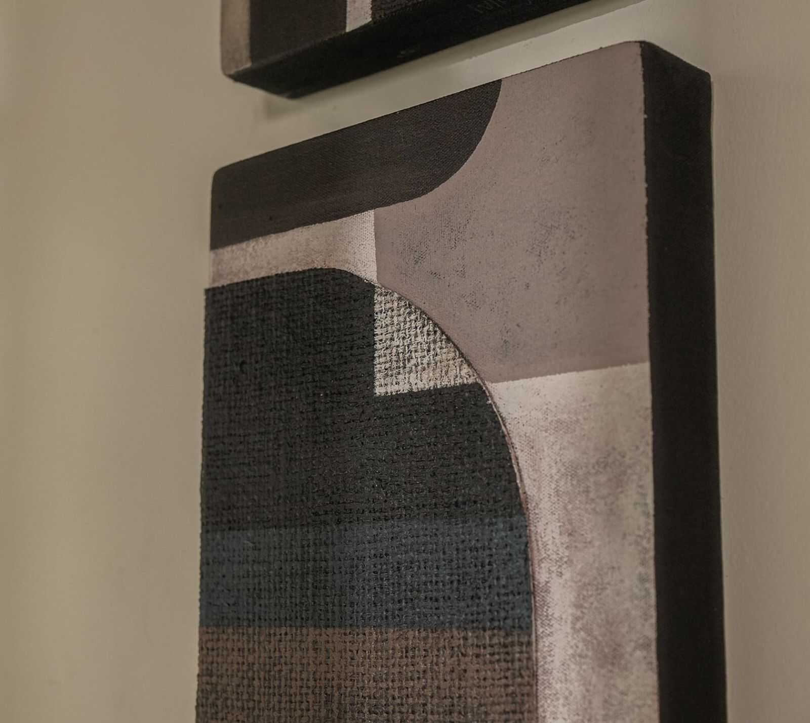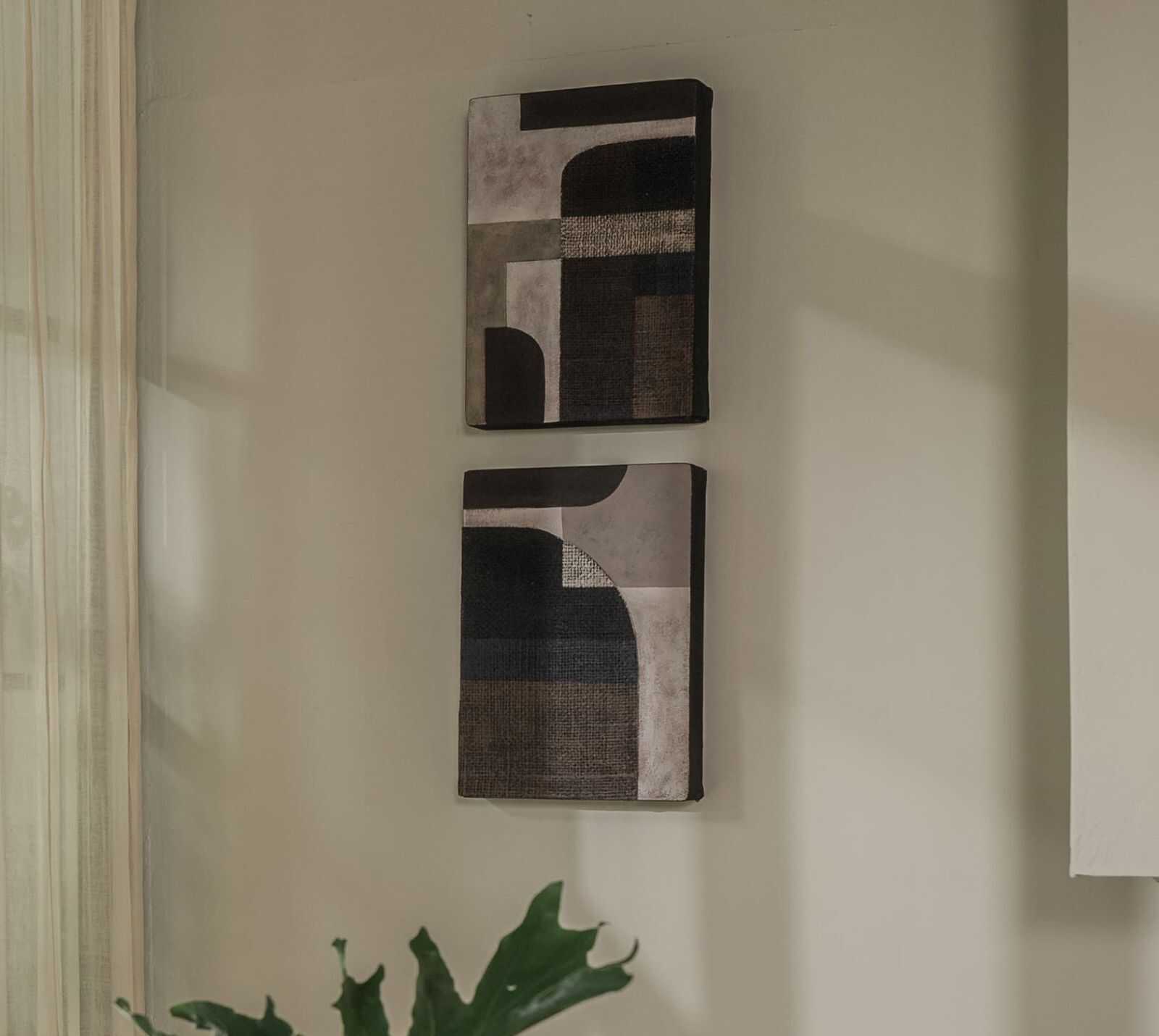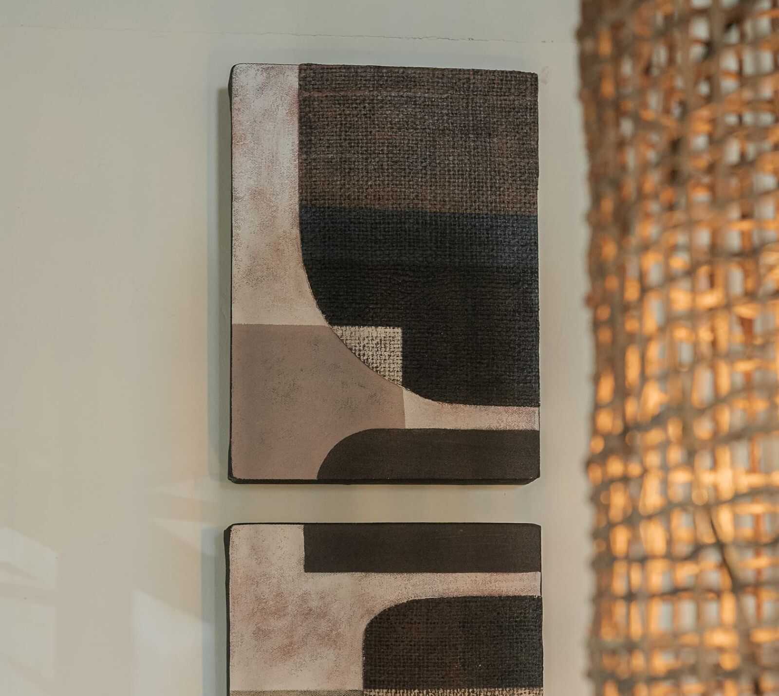 סט תמונות בהשראת אומנות מסורתית מבדי יוטה ממוחזרים על בסיס עץ מל