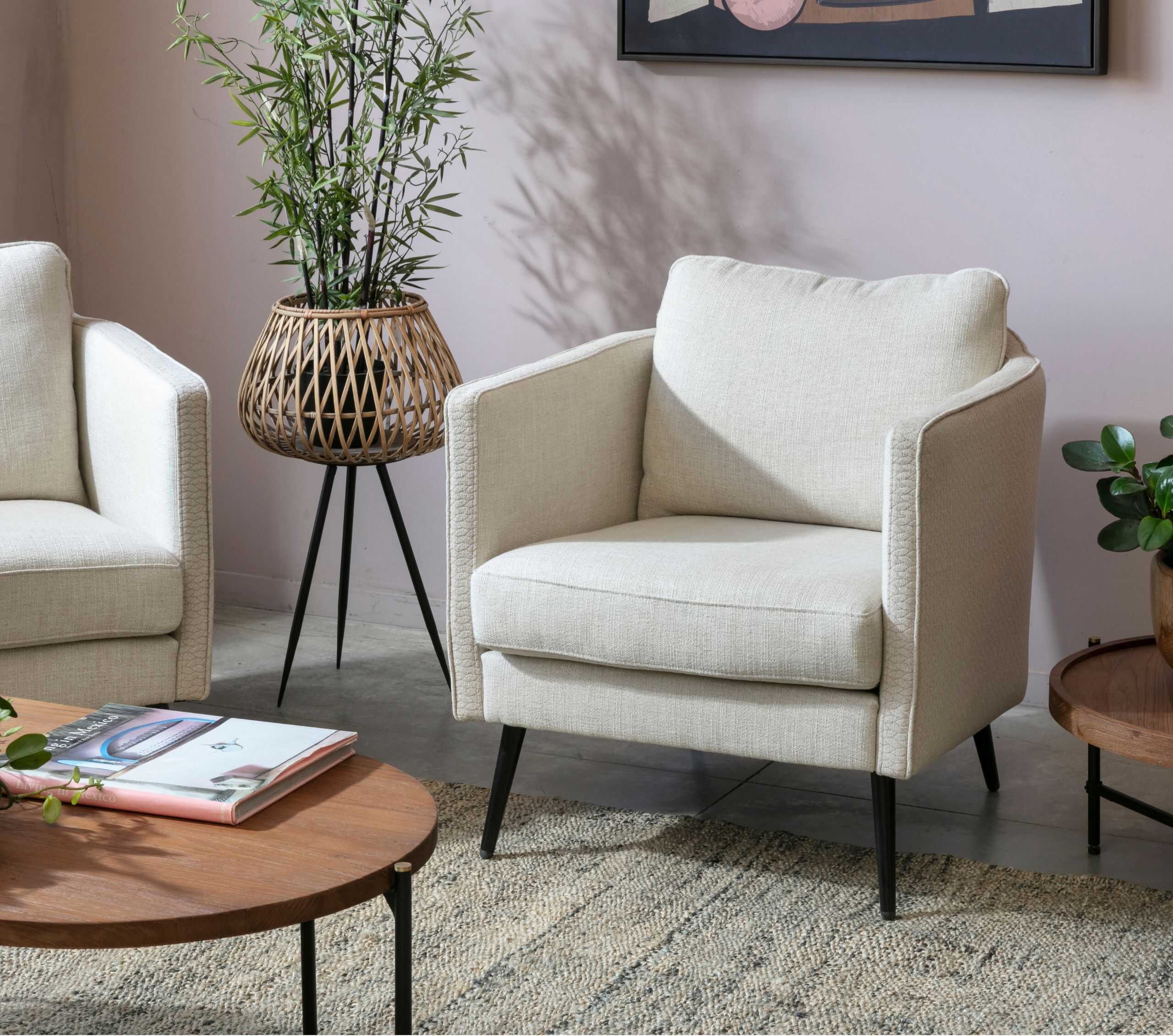 כורסא מרופדת עם משענות יד מעוצבת בסגנון רטרו. ניתן להזמין במגוון בדים וצבעים.