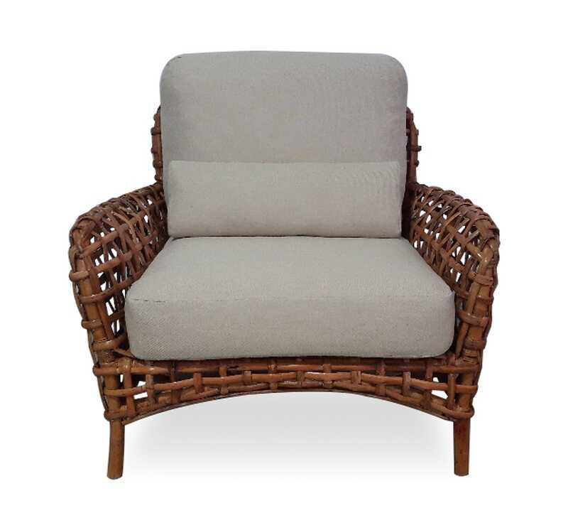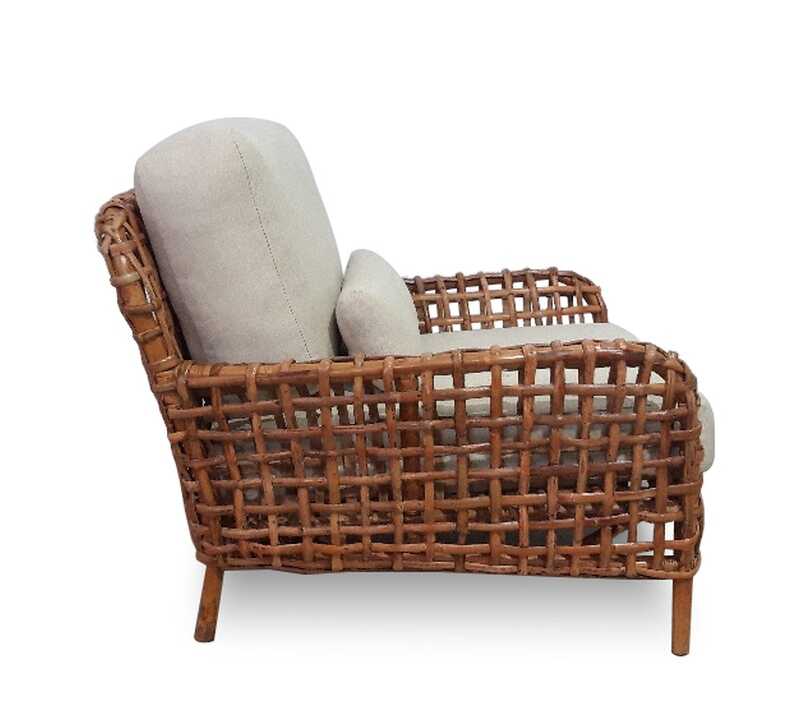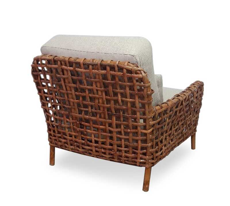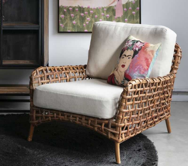 כורסא קלועה מראטן בעלת מושב וגב מרופד בסגנון בוהו שיק.