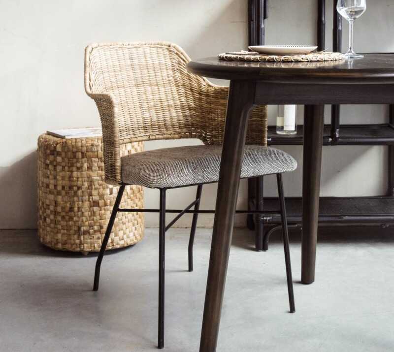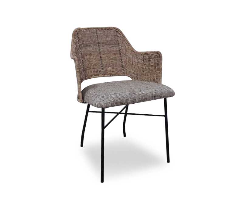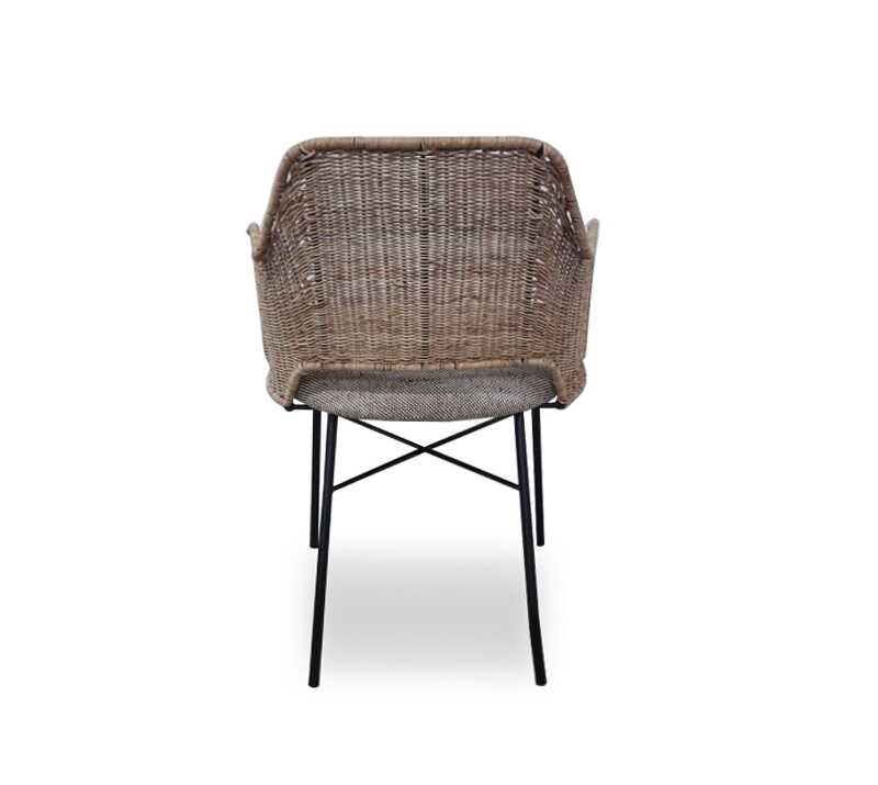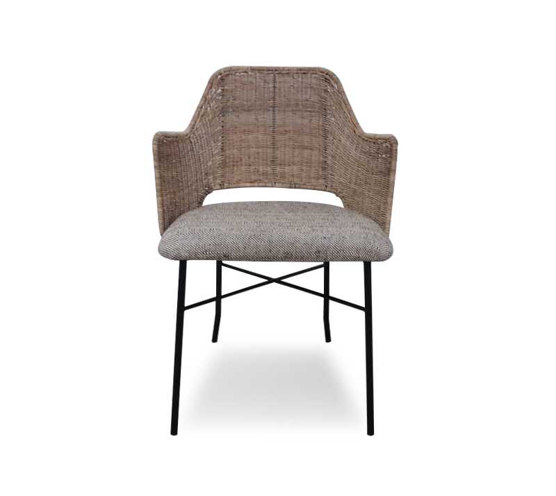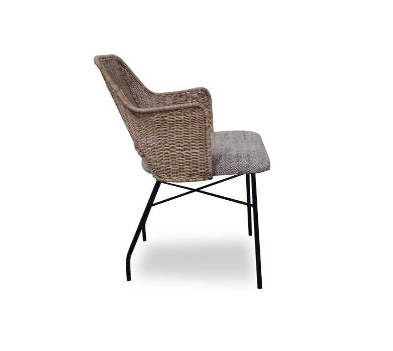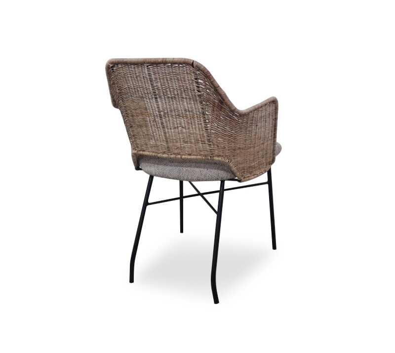 כסא רטאן, רגלי ברזל וריפוד פישטן בצבע טבעי.