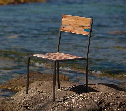 כסא יצירתי מפירוק סירות עם שילוב ברזל.