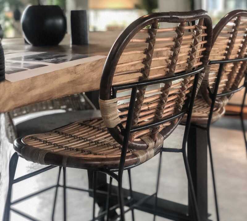 כסא בר ראטן עם מסגרת מתכת אלגנוית גב קלוע בעבודת די ועיצוב נוח לתמכה.משתלב נהדר במטבח או בדלפק, עם טאץ מודרני.