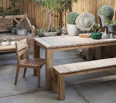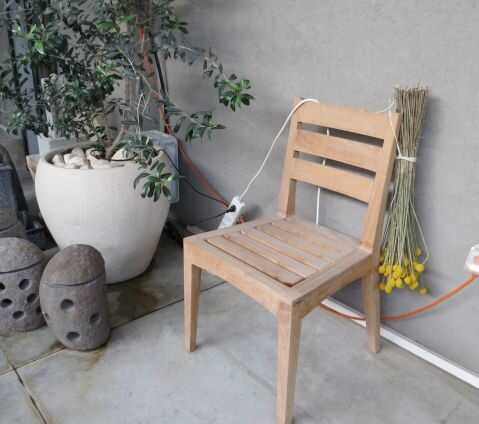 כיסא עץ טיק מלא לריהוט גן באווירה כפרית.