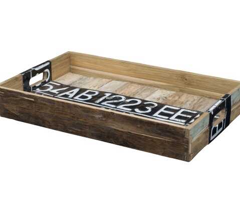 מגש מעוצב מעץ עם לוחית רישוי