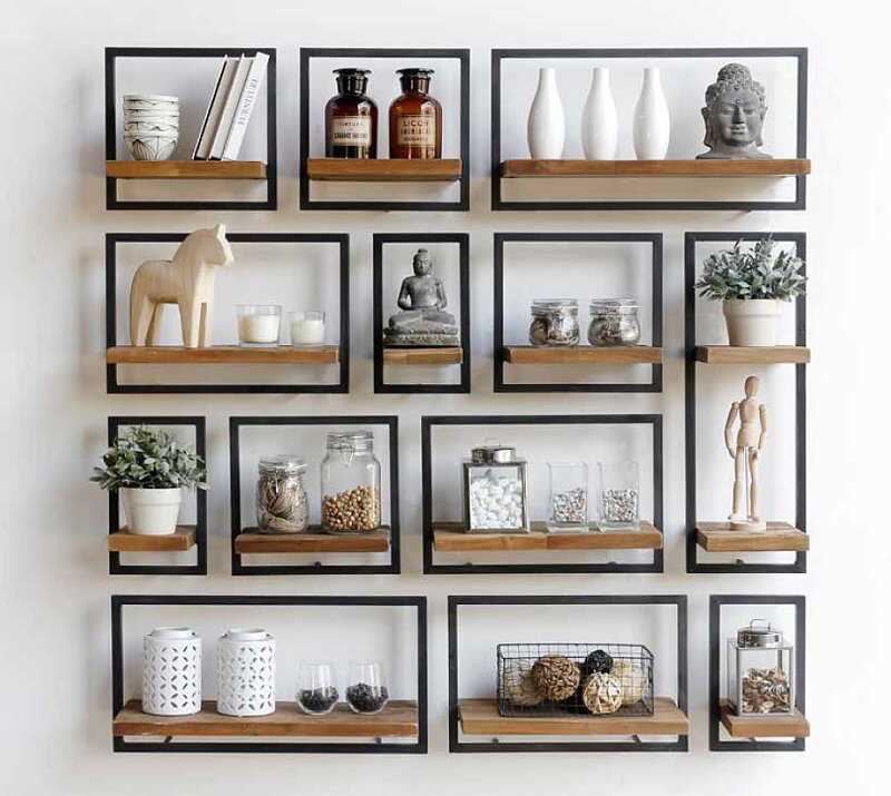 מערכת מדפים מודולרית לעיצוב אישי. עץ טיק מלא בשילוב ברזל.
