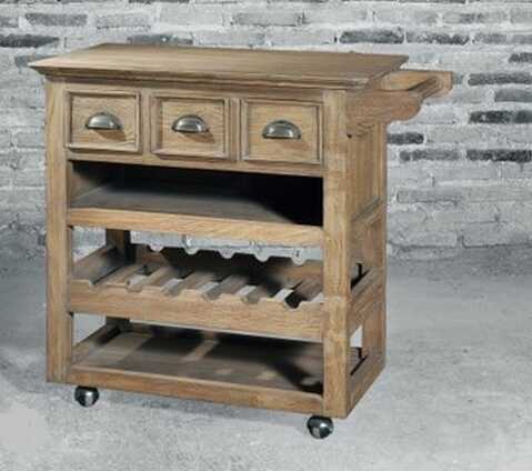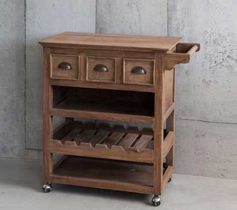 מזנון בר יין מעץ טיק ממוחזר בסגנון כפרי