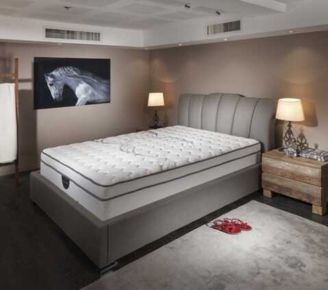 מיטה מרשימה עם נוכחות – מיטה עם בסיס גבוה וגב מרופד. ניתן לבחור ממגוון ריפודים.