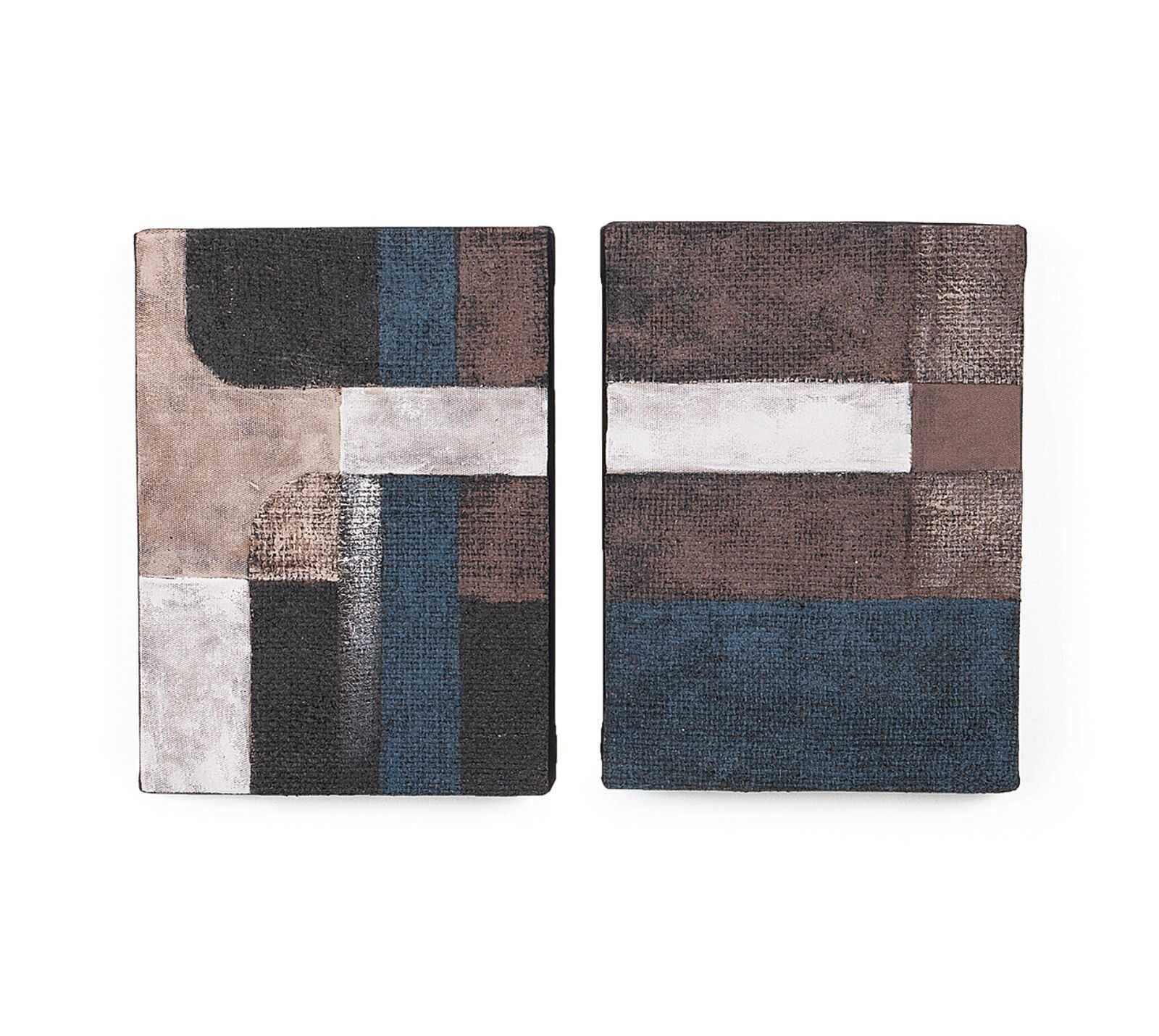 סט תמונות מבדי יוטה ממוחזרים וצביעה בצבע על בסיס מים. אומנות מסורתית שתשלים את עיצוב החלל.
