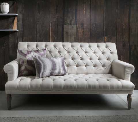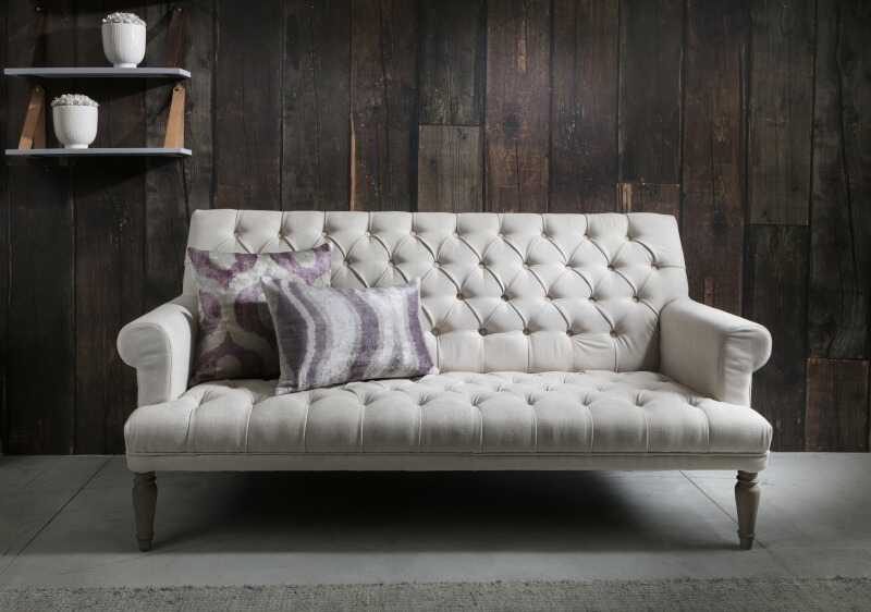 ספה עם ריפוד קפיטונז' בגוון בהיר
