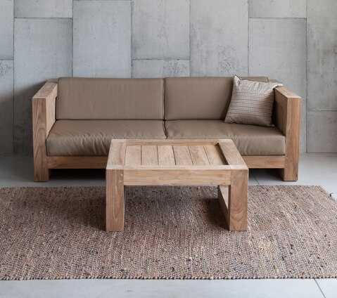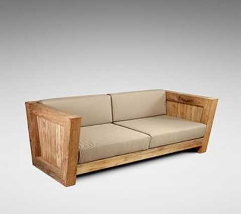 ספה מעץ טיק מלא ומסיבי עם כריות ישיבה