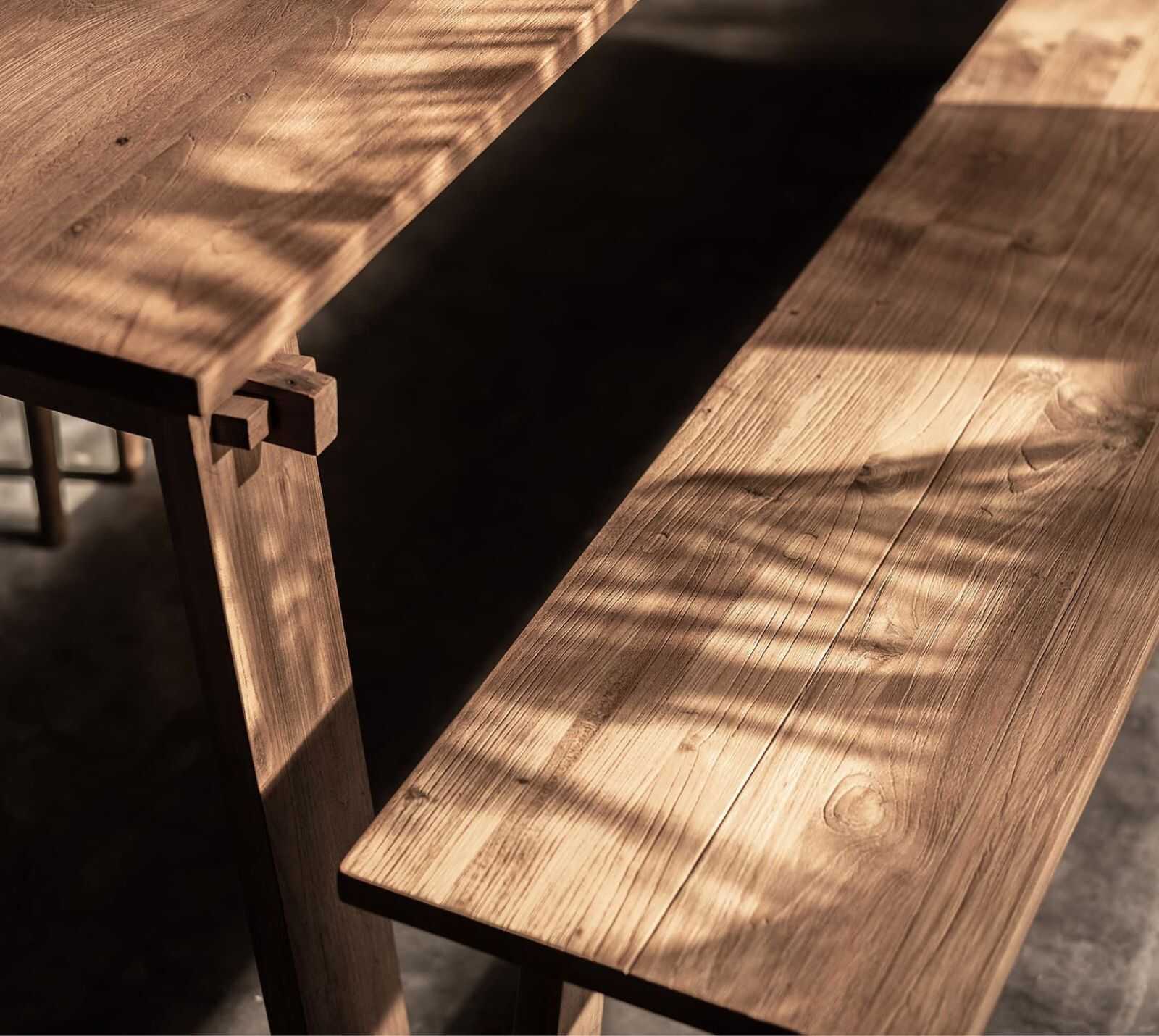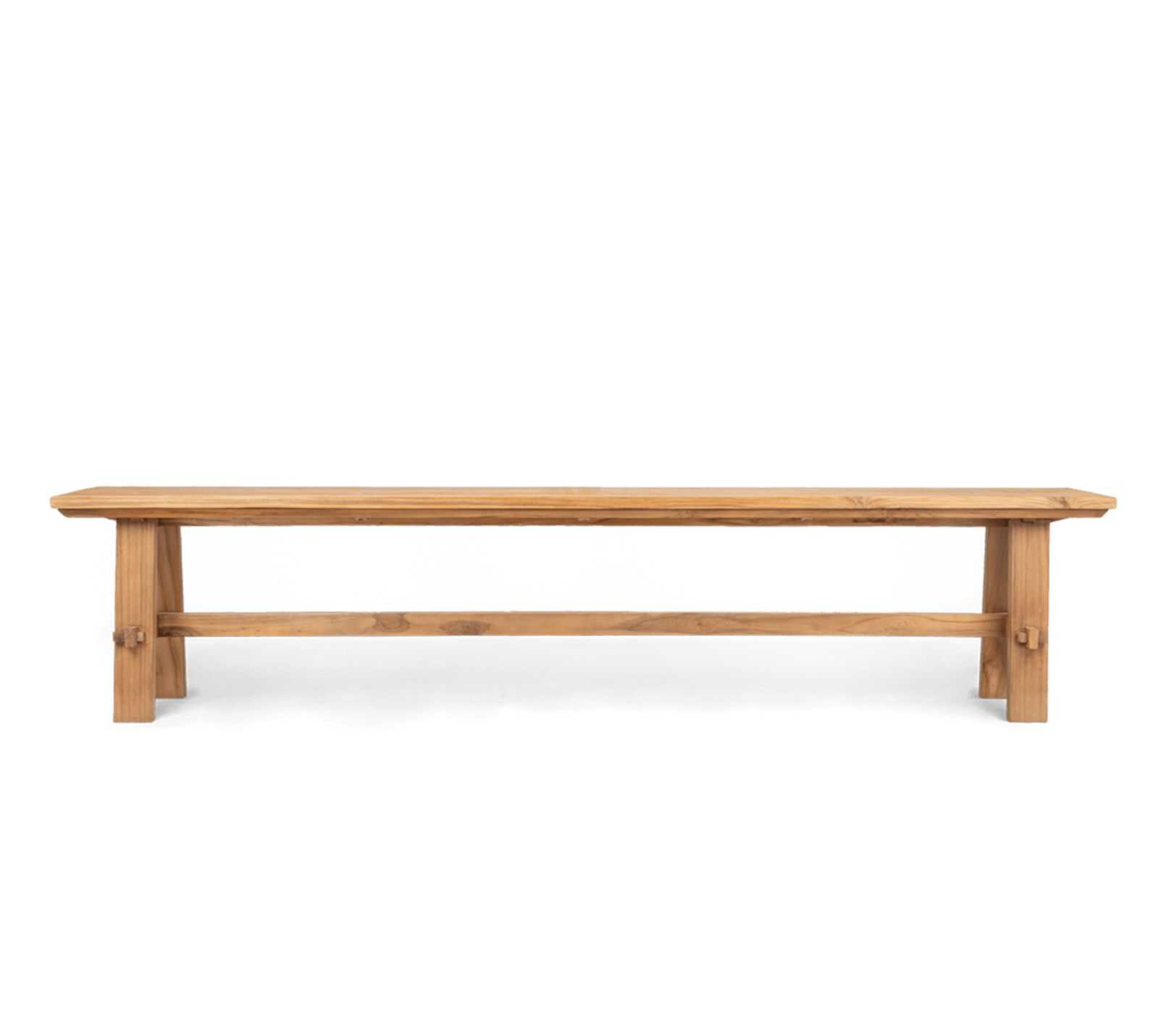ספסל עץ מלא בגימור טבעי מעוצב בקוים נקיים. קיים בשני גדלים – 180 ס"מ ו-220 ס"מ.