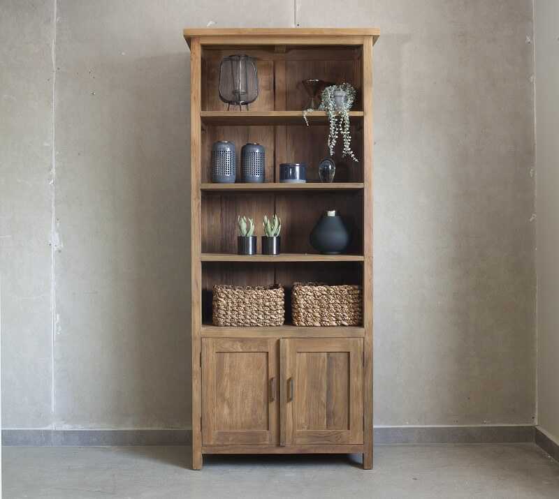 ספריה עם מדפים ודלתות מעץ טיק מלא
