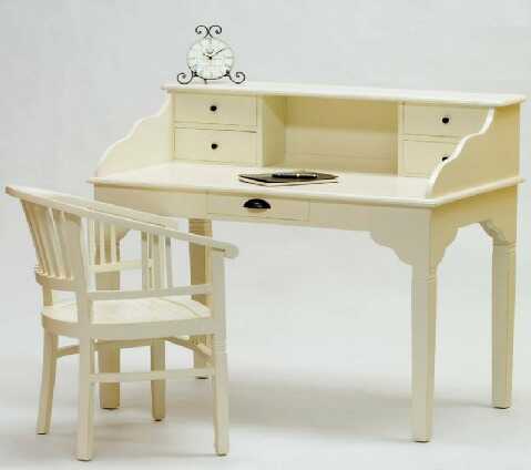 סקרטר מעץ טיק מלא בצבע שמנת עם 5 מגירות