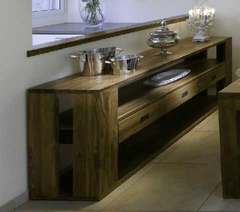קונסולה עשויה עץ טיק ממוחזר מלא בקוים חלקים ונקיים. פלטה של 3 ס"מ .