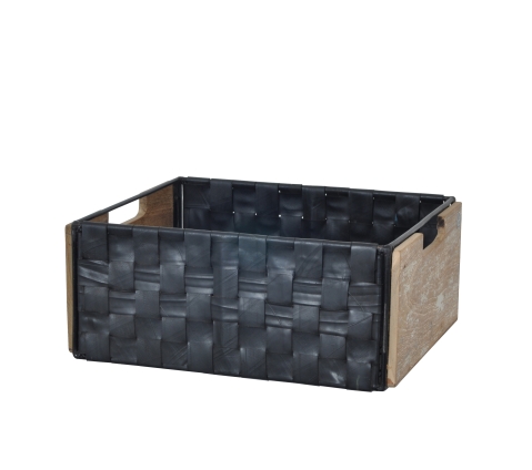 קופסאת אחסון מעץ עם מסגרת ברזל וידיות