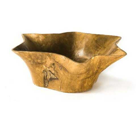 קערה בעלת צורה ייחודית מגולפת משורש עץ הטיק.